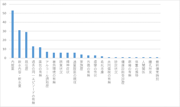 内服薬が最多で,飲水エピソードがあったことからその内容や量についての質問が続きました.