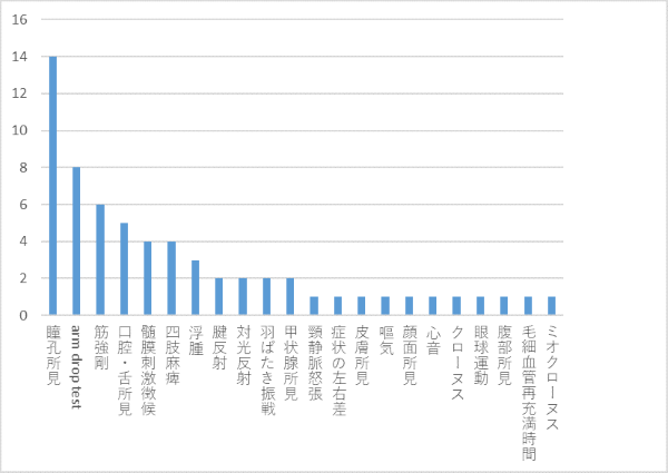 瞳孔所見を筆頭に神経学的所見が並び,浮腫や甲状腺といった回答もみられました.